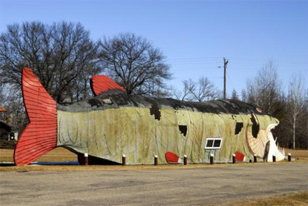 The 65 foot long Muskie was constructed in the 1950’s as a roadside drive-in and snack bar in the town of Bena, Minnesota.