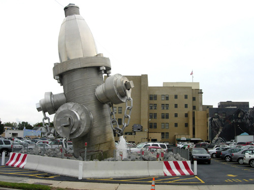 It is however, a sculpture of Blue Sky Gallery titled “Busted Plug”, aka the World’s Largest Fire Hydrant.