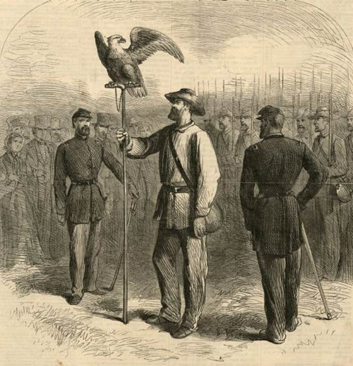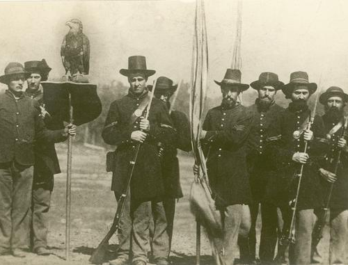 The 8th Wisconsin Volunteer Infantry Regiment, which mustered in Madison, Wisconsin on September 13, 1861, possessed an American bald eagle as its mascot. Her